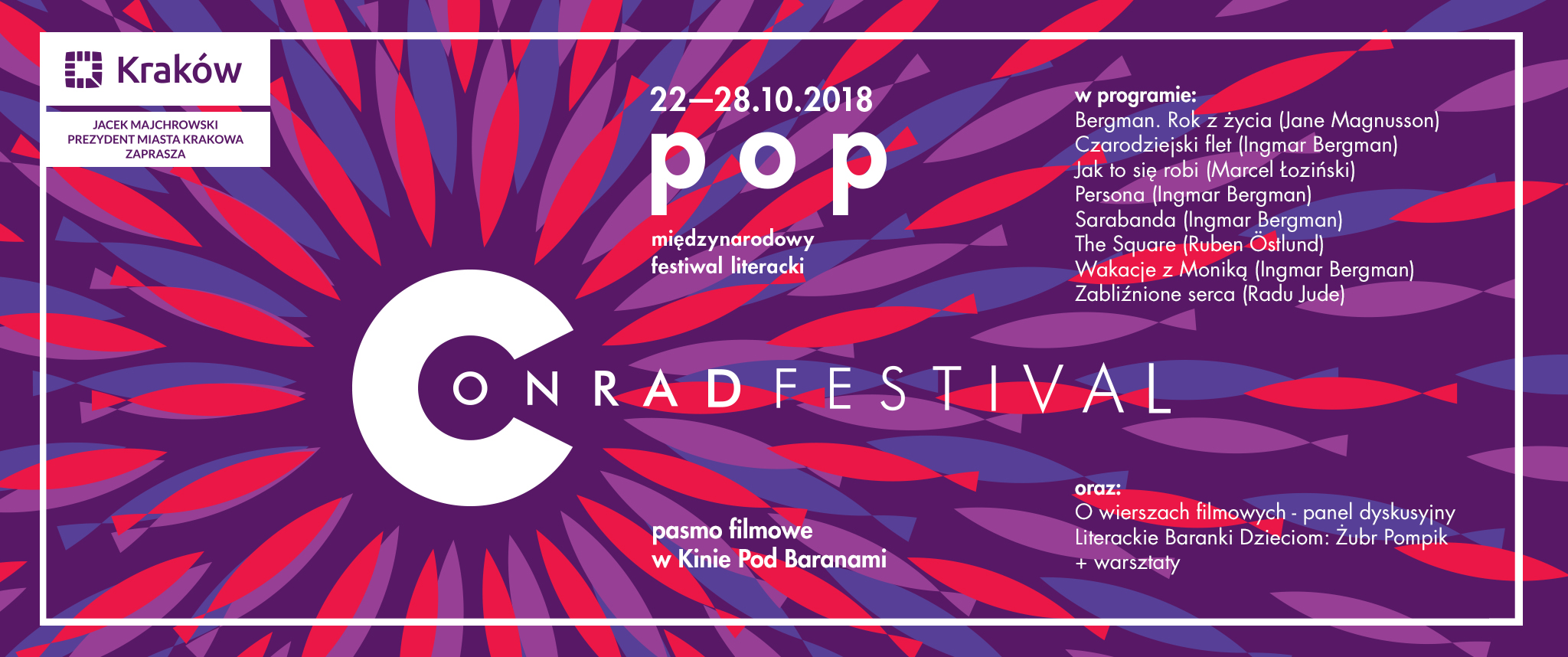 Сезон 2018 года прошёл под лозунгом POP [ПОП]. Это короткое слово в польском языке входит в состав сразу нескольких важных для современного литературного рынка понятий: poprawność [правильность, корректность], popularność [популярность], popęd [влечение, пристрастие], populizm [популизм], popkultura [поп-культура], popłoch [паника, суматоха] и popyt [спрос]. Каждый день фестиваля был посвящен одному из них.
