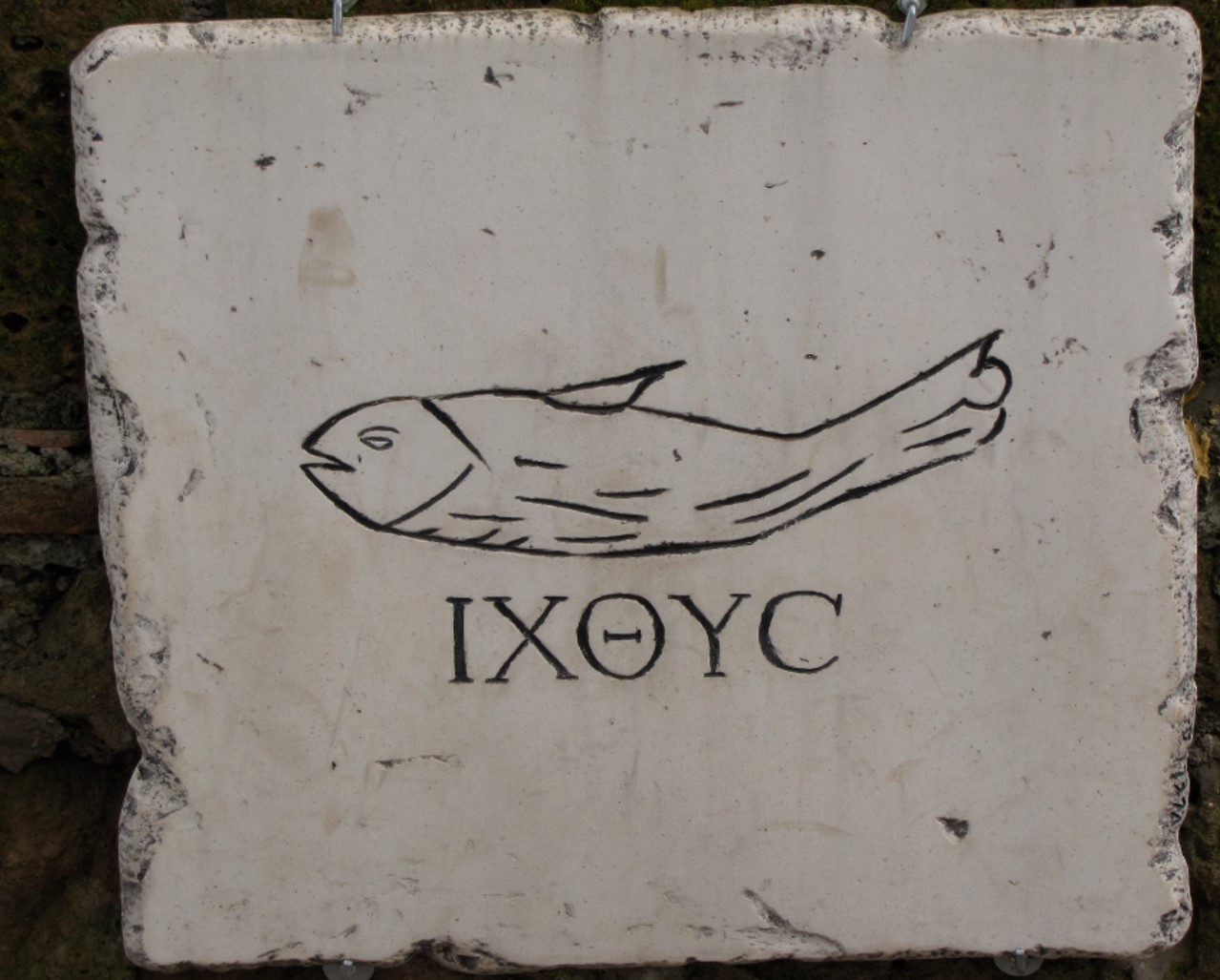Рис. 1: Надгробная плита из римских катакомб. Ихтис.
