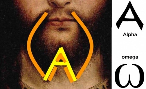 Черты лица, которыми живописцы наделяют Иисуса, также говорят о различных замыслах авторов. Баутс следует северной традиции в изображении локонов волос, падающих на плечи, тонких бровей и негустой растительности (рис. 7). Скорее всего, Ван Эйк первым применил один особенный прием, подхваченный другими художниками, в том числе, Дирком Баутсом. Этот прием заключается в том, что борода Иисуса Христа растет в форме, напоминающей греческие буквы «Альфа» и «Омега», которые в свою очередь являются наименованием Бога (рис. 8). Этот символизм тоже работает на создание привычного нидерландцу священного молитвенного образа.