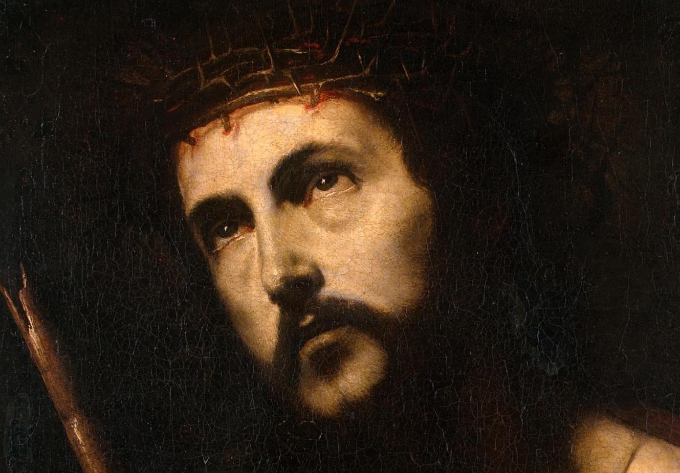 Рибера решает образ Христа по-другому. В нем тоже прослеживается сила, но она обретает характер божественного величия и исходит не только изнутри, но и извне. Сын Божий обращается к Отцу, прося его поддержки и укрепляя свой дух, несмотря на неизбежность предстоящих мук. В отличие от Баутса, Рибера строит тело Христа анатомически правильно, не опускает его плечи. Этим он передает мужественность и готовность принять судьбу. У него Христос поднимает ярко блестящие глаза к небу, обращаясь к Богу и прося придать сил в испытаниях. Это движение семантически очень важное. Оно усилено параллелью скипетра, который тоже устремляется вверх.