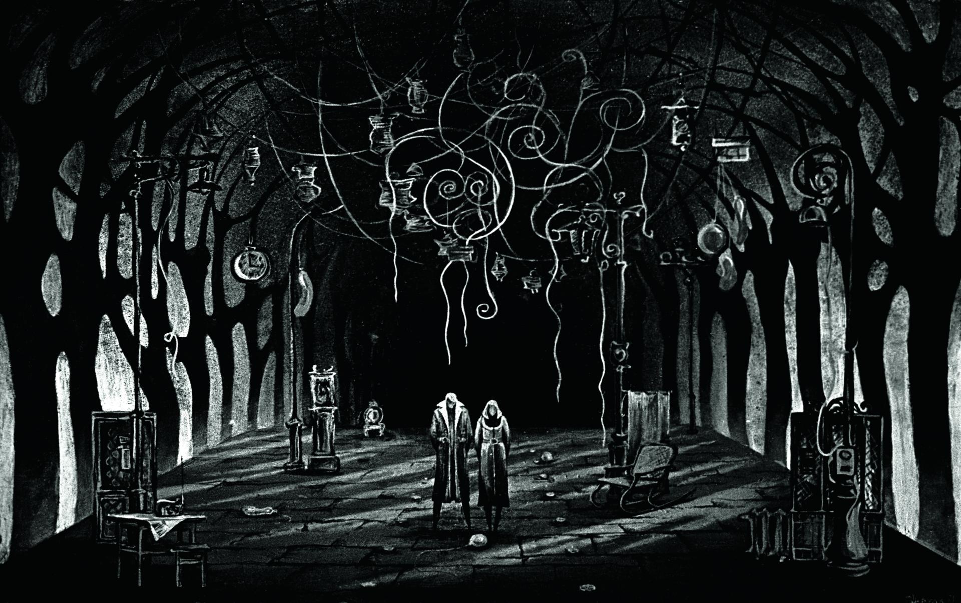 В далёкие семидесятые прогремел по Ленинграду спектакль «С любимыми не расставайтесь» по пьесе А. Володина. И так мне хотелось, чтобы сценография моя создавала то ощущение тревоги и безысходности, которым эта пьеса пропитана… А место действия – парк! И были в те годы такие «корпоративы» выходного дня: шарики, бег в мешках, конфетти и серпантин… А у героев – смертная тоска в глазах и приближающееся безумие… И вот родился мой парк таким симбиозом ветвей-проводов, троллейбусных и электрических… И серпантин кровавыми струями стекал с неотвратимо угасающих небес… А на Кировских островах (тогда, в так называемом ЦПКО) и сегодня есть такая бесконечно печальная аллея…