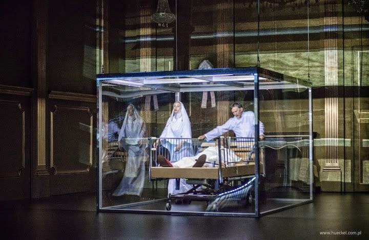 Идея перенести место действия в Ватикан поначалу может шокировать, но где еще в современном мире можно найти власть, даную свыше Богом? «Король Лир» Яна Кляты – глубокое и очень человечное размышление о старости и смерти. Король Лир – уже не отец, раздающий свое королевство дочерям. Действие перенесено в подземелья Ватикана, Лир – Папа Римский, передающий власть иерархам церкви. Этим спектаклем Клята задает фундаментальные вопросы о власти человека на земле, о возможности отречения от трона, данного по Божьему благословению, о духовном измерении кончины иерарха.