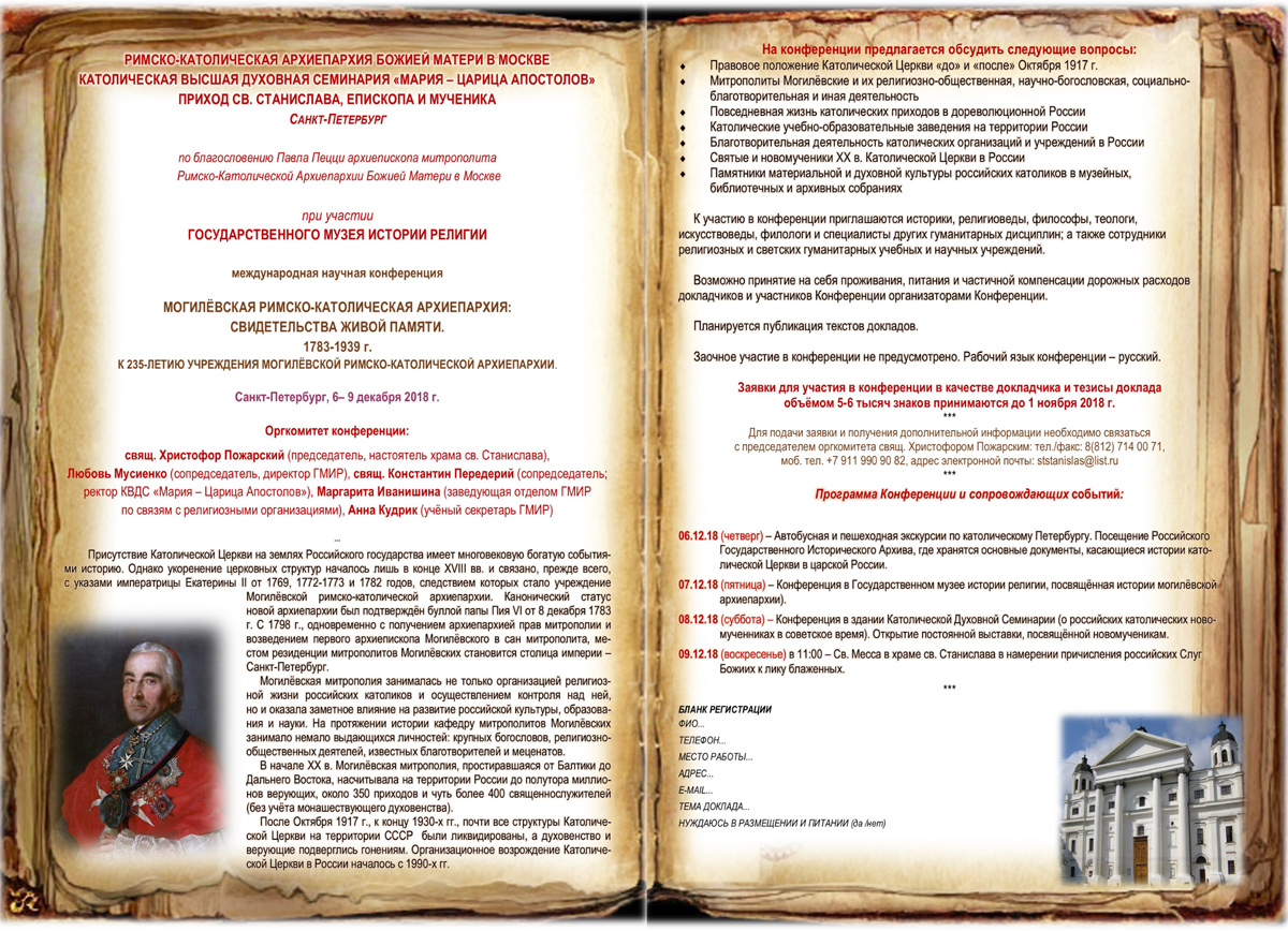 07.12.18 (пятница) – Конференция в Государственном музее истории религии, посвящённая истории могилёвской архиепархии).