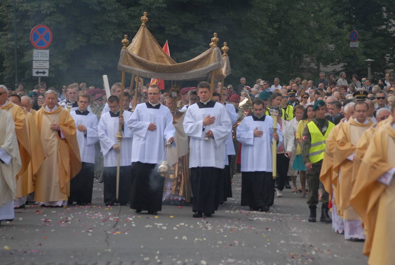 Boże Ciało, a w rzeczywistości święto Najświętszego Ciała i Krwi Pańskiej obchodzone jest zawsze 60 dni po Wielkanocy, a więc 10 dni po Zesłaniu Ducha Świętego. Zawsze w czwartek, podobnie jak Ostatnia Wieczerza. Początkowo było to Święto Najświętszego Ciała Chrystusa. W 1849 roku ustanowione zostało jeszcze Święto Najdroższej Krwi Pana naszego Jezusa Chrystusa a w 1969 roku reforma liturgiczna papieża Pawła VI połączyła oba święta i odtąd obchodzone jest Boże Ciało jakie znamy dzisiaj. Dla całego Kościoła święto zostało ustanowione przez papieża Urbana IV. Bullą Transiturus – de hoc Mundo (1264). Dokument jednak nie został wydany z powodu śmierci papieża. Dokonał tego papież Jan XXII (w 1334 r.), natomiast papież Bonifacy IX polecił w 1391 r. wprowadzić święto Bożego Ciała wszędzie tam, gdzie jeszcze nie było ono obchodzone. W Polsce jako pierwszy wprowadził to święto bp Nankier w 1320 r. w diecezji krakowskiej. Od końca XV w. przy okazji tego święta udzielano błogosławieństwa Najświętszym Sakramentem. Podczas procesji niesiono krzyż z Najświętszym Sakramentem. W ten sposób nawiązywano do dawnego zwyczaju zabierania w podróż Eucharystii dla ochrony przed niebezpieczeństwami. W Niemczech procesję w uroczystość Bożego Ciała łączono z procesją błagalną o odwrócenie nieszczęść i dobrą pogodę, dlatego przy czterech ołtarzach śpiewano początkowe teksty Ewangelii i udzielano uroczystego błogosławieństwa. W Polsce zwyczaj ten wszedł do „Rytuału piotrkowskiego” z 1631 r. Udział w procesji traktowano jako publiczne wyznanie wiary. W Polsce od czasów rozbiorów z udziałem w procesji łączyła się w świadomości wiernych manifestacja przynależności narodowej. Po II wojnie światowej procesje w czasie Bożego Ciała były znakiem jedności narodu i wiary. Podczas procesji wierni zatrzymują się zawsze przed czterema ołtarzami. Liczba ta związana jest z czterema ewangelistami: św. Markiem, Janem, Łukaszem i Mateuszem. Boże Ciało ma wyjątkową i uroczystą procesyjną oprawę, dekoruje się ołtarze, ulice, którymi przejdzie procesja, a także domy. W czasie procesji niesione są obrazy przedstawiające świętych, śpiewa się pieśni o Najświętszym Sakramencie. Procesja Bożego Ciała nie mogłaby się odbyć bez sypania kwiatów. Dziewczynki całą drogę procesji posypują kwiatami lub ich płatkami. Wszystko to jest wyrażeniem dziękczynnego charakteru tego święta.