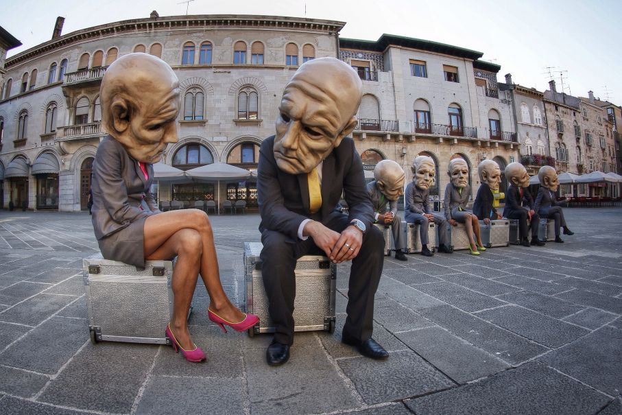 Spektakl pokazuje jeden dzień z życia człowieka XXI wieku. Współczesny Everyman, którego życie „zawieszone” jest pomiędzy Domem a Pracą w korporacji „drogę przez życie” identyfikuje z „drogą do pracy”. Peregrynacja w poszukiwaniu sensu jawi się jako mozół dnia powszedniego, odarty z duchowości, miłości i piękna. Świat Peregrinusa, to cywilizacja „cyfrowa” – smutna, przerażająca i groteskowa, z dominującą religią – konsumpcją. Domem Peregrinusa XXI w. jest witryna sklepu. Mobilny charakter przedstawienia eksponuje perypetie bohatera w różnych kontekstach przestrzeni miejskiej. Homo Peregrinus to sformatowana jednostka ludzka, odarta z uczuciowości, przewidywalna i pozbawiona indywidualnych cech.